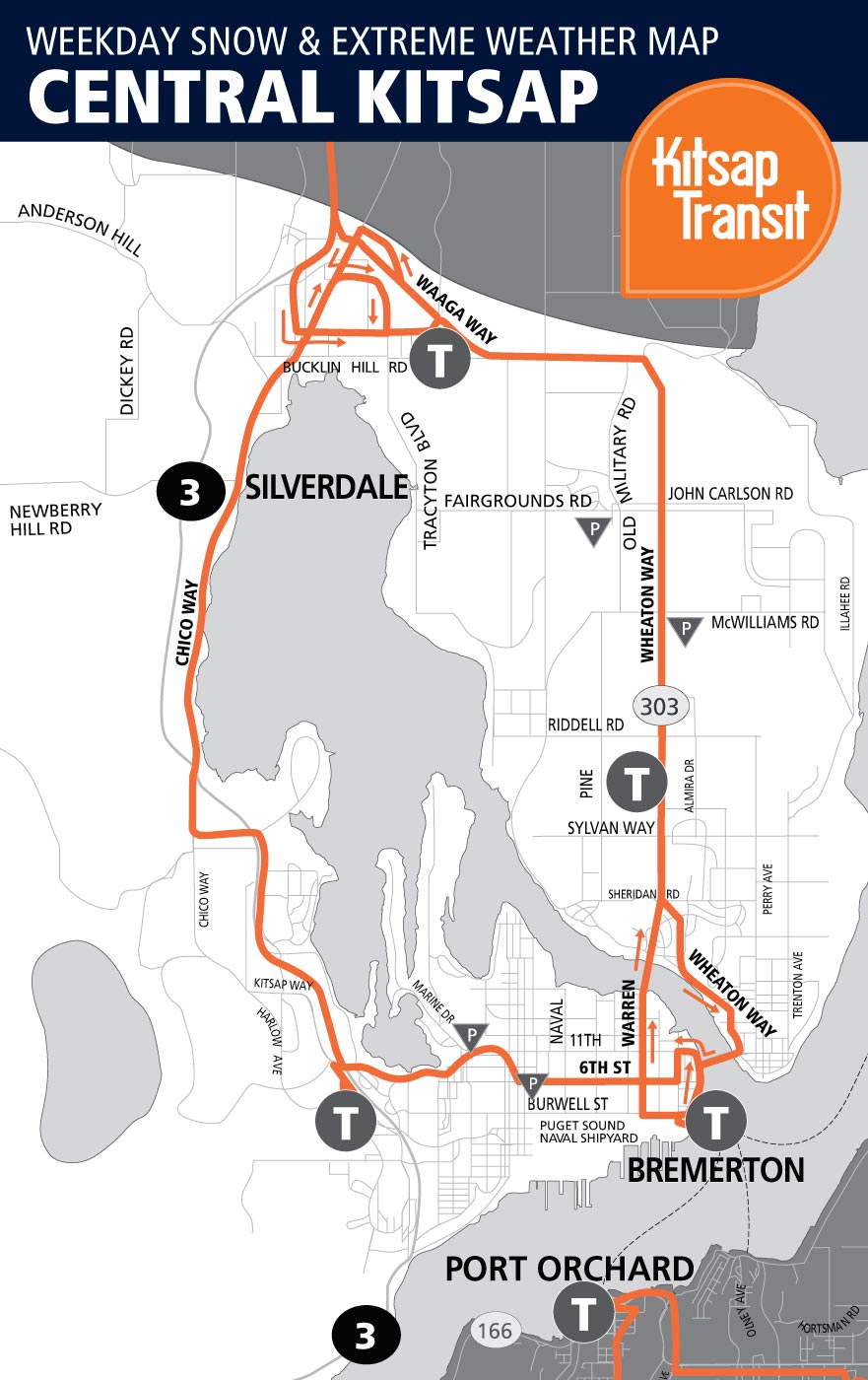Central KitsapDownload route map (pdf)Emergency service bus stop list