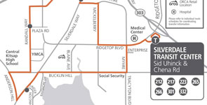Service TimesWeekdays and Saturdays Areas ServedSilverdale Transit Center, a small section of Myhre and Ridgetop Boulevard, a small section of Silverdale Way and Anderson Hill, Randall Way, Bucklin Hill and the Social Security office. StopsThis bus will stop at marked stops. Buses will travel both directions on the loop: Passengers can catch a bus every half-hour from stops across the street from each other, or every hour from stops on the same side of the street. Schedule Effective December 8, 2024 |