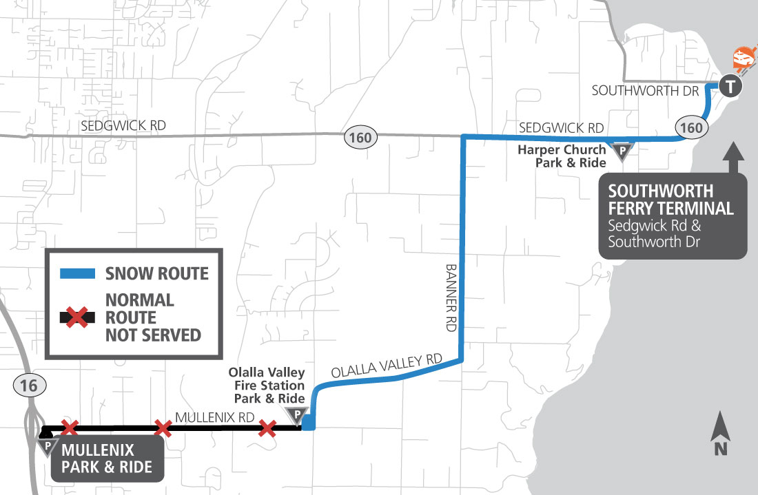 Route DetailsRoute 185 will travel a modified route when Snow and Extreme Weather events are activated, unless service has been canceled or altered to Emergency Service. Areas Not Served: Mullenix Park & Ride and Mullenix Road between Mullenix Park & Ride and Olalla Valley Fire Station 12 Park & Ride. Click Here for more information and route status when Snow and Extreme Weather events are activated.